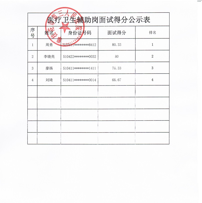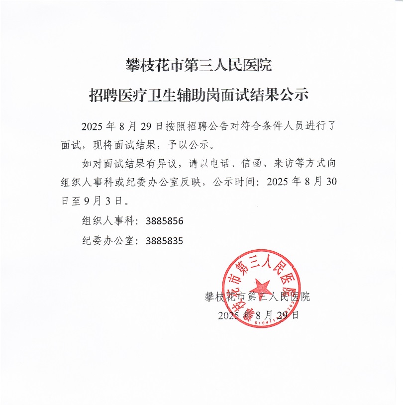攀枝花市第三人民医院招聘医疗卫生辅助岗面试结果公示